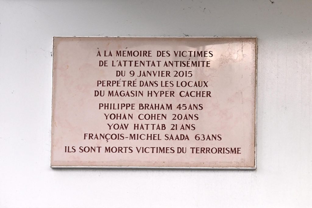 Un premier hommage, organisé par la Ville de Paris, a eu lieu plus tôt cette semaine, mercredi 7 janvier devant une plaque qui rend hommage «aux victimes de l’attentat antisémite du 9 janvier 2015». Sur le mur de l’enseigne, cette plaque porte les noms des trois clients et de l’employé du supermarché cacher tués, ainsi que leur âge : Philippe Braham, 45 ans, Yohan Cohen, 20 ans, Yoav Hattab, 21 ans, François-Michel Saada, 63 ans.