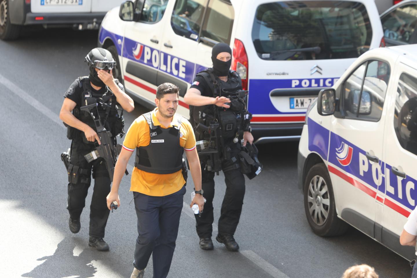 L’unite d’élite de la Police nationale, le RAID, sétait sur place, encadrée par plus d’une dizaine de véhicules de policiers et de pompiers.