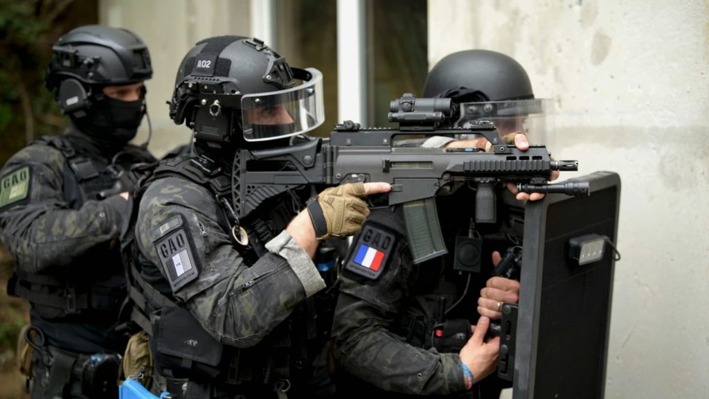 E. F : Au sein du groupe, chaque opérateur du GAO, même si ce dernier reste très polyvalent, est spécialisé dans un domaine spécifique (étroitement lié à sa position dans la colonne d’assaut ou sa fonction lors d’une intervention), pour ma part étant deuxième de colonne (juste derrière le porteur du bouclier) j’étais armé d’un fusil d’assaut dont je m’étais spécialisé au maniement.