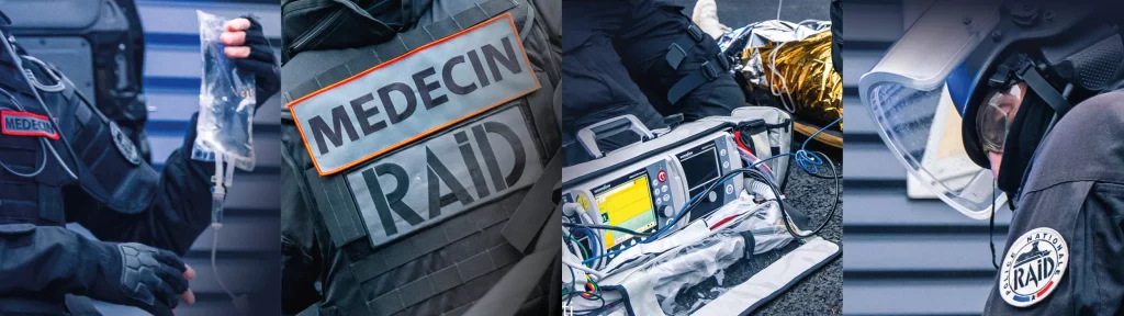 « Au quotidien, les opérateurs du RAID s’entraînent pour intervenir dans toute situation à risques : forcené, prise d’otage, personne suicidaire armée… Parmi eux figurent des médecins qui progressent au cœur des colonnes d’assaut, prêts à porter secours aux éventuelles victimes, policiers comme civils. Manuel, chef du groupe médical d’intervention du RAID qu’il a intégré en 2013, explique le fonctionnement de ce groupe crucial.