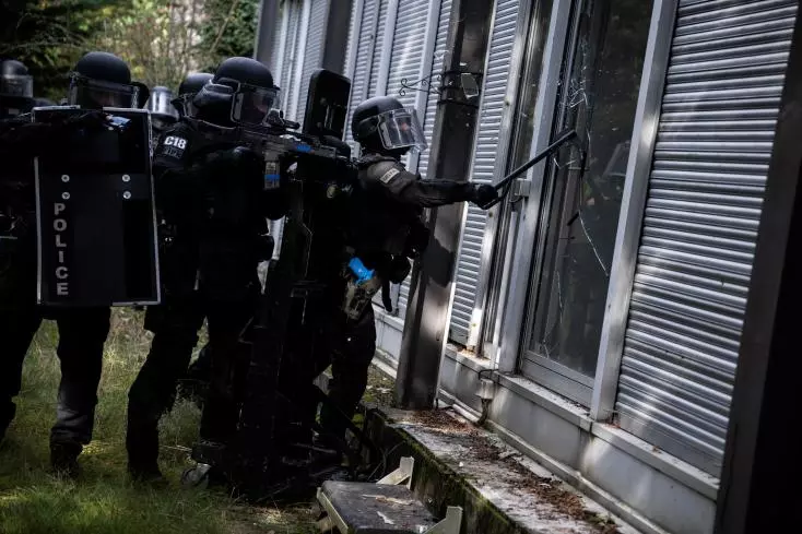 Une dernière tentative de négociation avortée – « Cassez-vous! » – et les « effracs », chargés de permettre une entrée rapide et efficace du groupe d’intervention, entrent en scène.