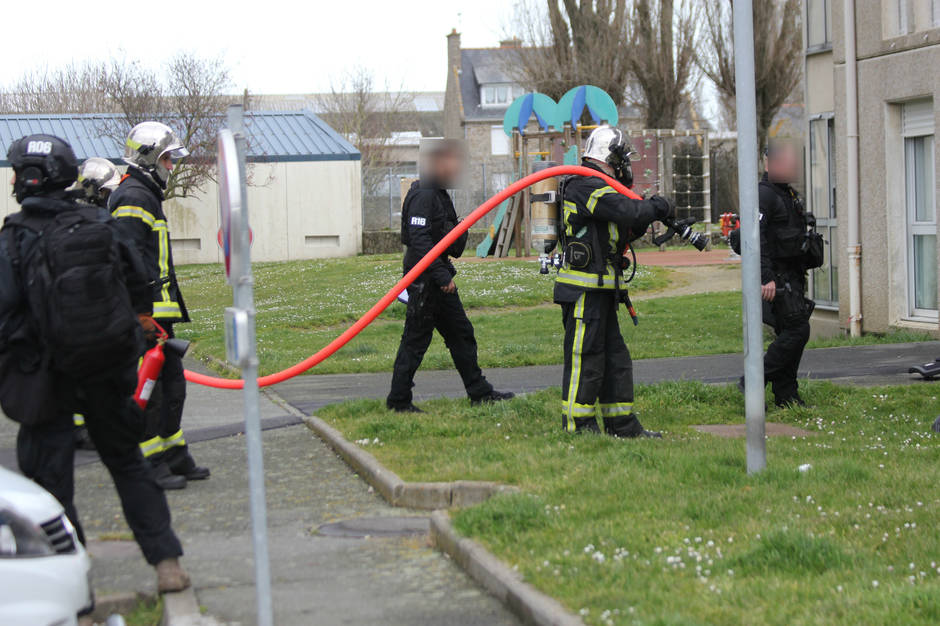 « Gros déploiement de forces ce vendredi 23 mars 2018 entre 10 h 50 et 12 h 30 devant un groupe d’immeubles malouins, rue Miriel : un homme menaçait de se suicider avec un rasoir ou de mettre le feu dans son appartement situé au rez-de-chaussée.