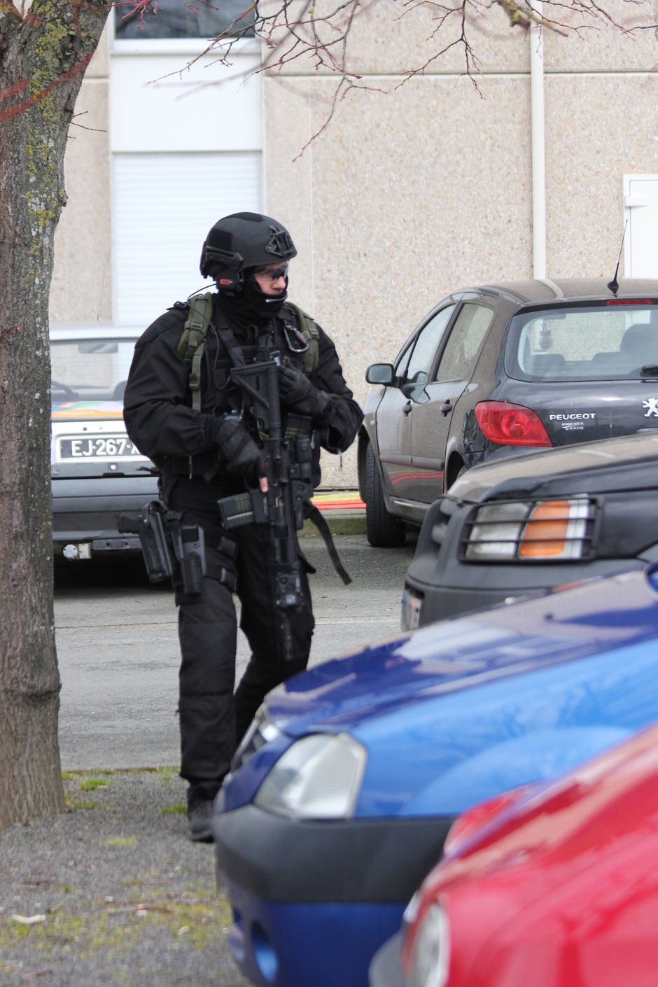 Une quinzaine de policiers du RAID, lourdement équipés, sont venus de Rennes avec cinq véhicules quarante minutes