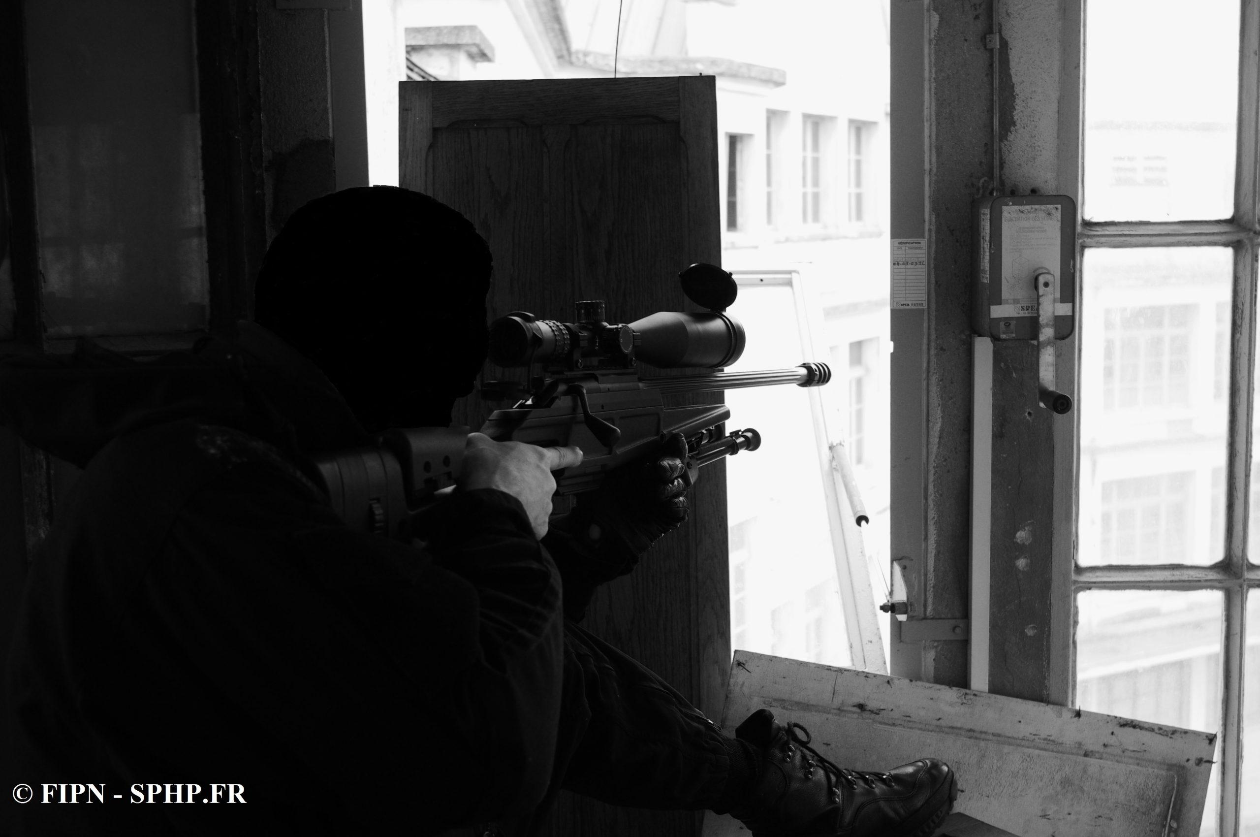 Malgré le poids de leur matériel additionné à l’armement, les policiers bondissent et sécurisent pièce apres pièces l’étage occupé.