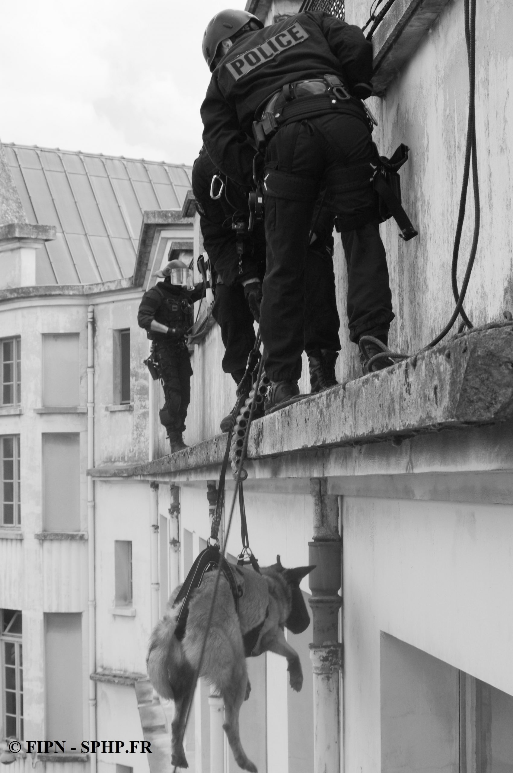 Kato décide de passer à l’assaut, le malinois et plusieurs policiers descendront en rappel pour rejoindre l’équipe d’assaut toujours sous la protection des THP.