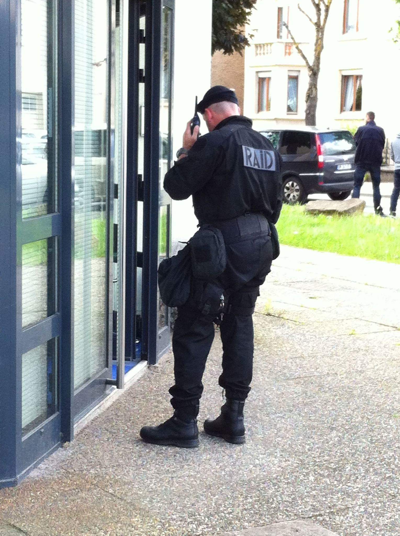 15h20 : un convoi d’une douzaine de policiers de l’antenne du Raid de Strasbourg arrive, toutes sirènes hurlantes, escorté par des motards du commissariat de Metz. Plusieurs véhicules banalisés déboulent en trombe. Encagoulés, les hommes s’équipent lourdement. Un chien, de type berger malinois, participe également à l’intervention. Vingt minutes à peine après leur arrivée, les hommes de cette unité d’élite s’élancent méthodiquement en colonne en direction du pavillon.